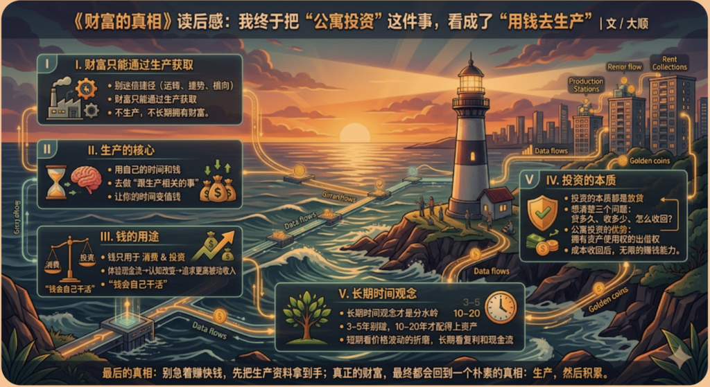 《财富的真相》最狠的地方在于:它不跟你讨论情绪,它只告诉你——如果不生产,就不可能长期拥有财富。