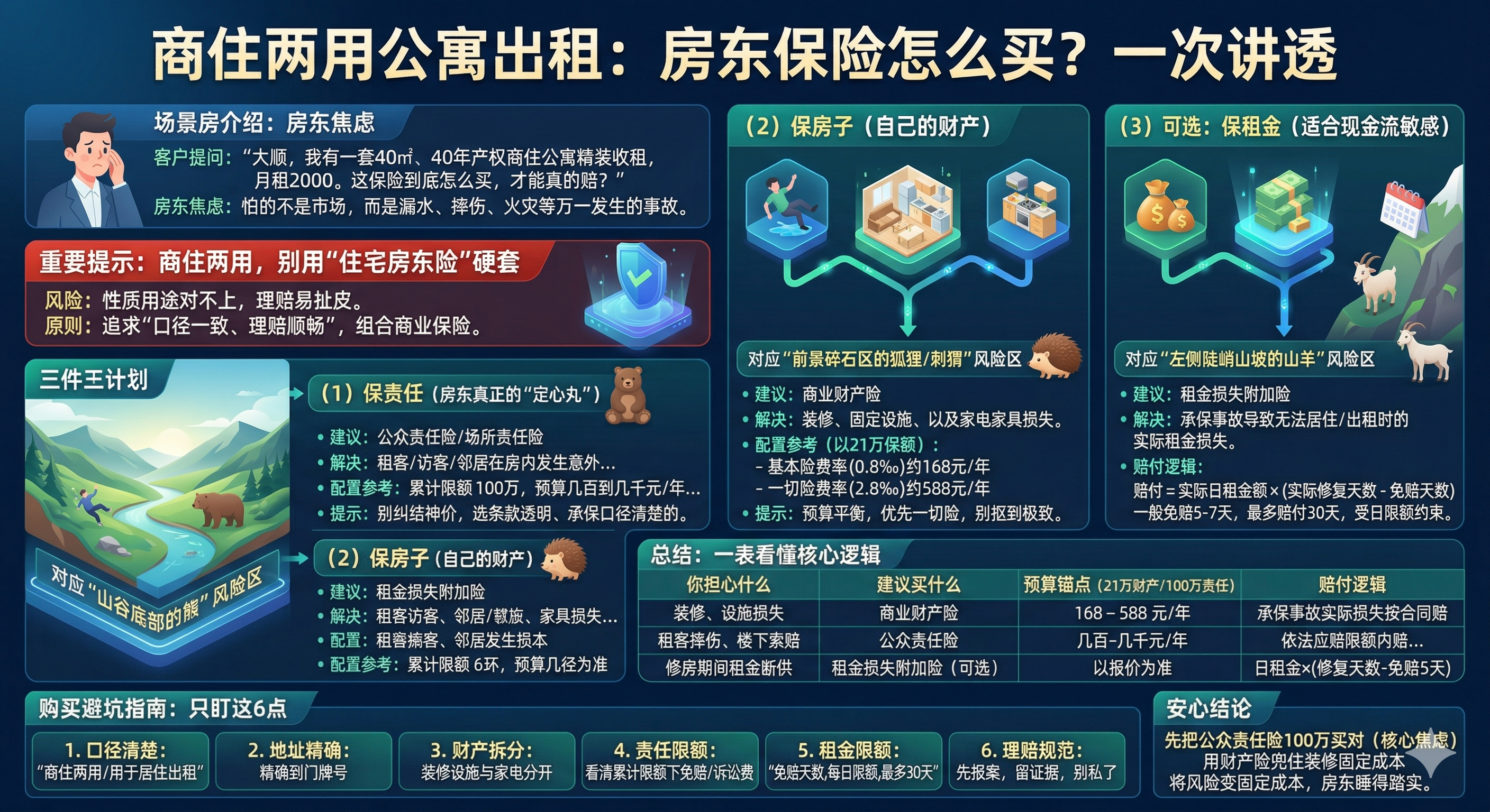 客户问我:商住两用公寓出租,房东到底该买什么类的保险?我把答案一次讲透(可直接照着买)
