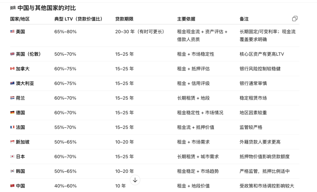 - 杠杆策略:贷款期限长达20-30年,LTV(贷款价值比)高达75%-80%。