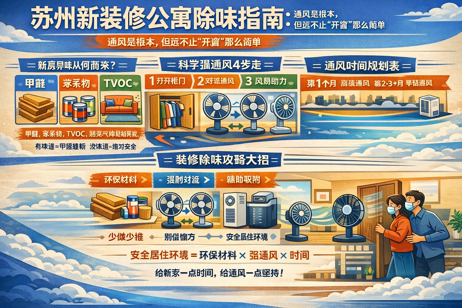 安全居住环境 = 环保材料 × 科学通风 × 时间