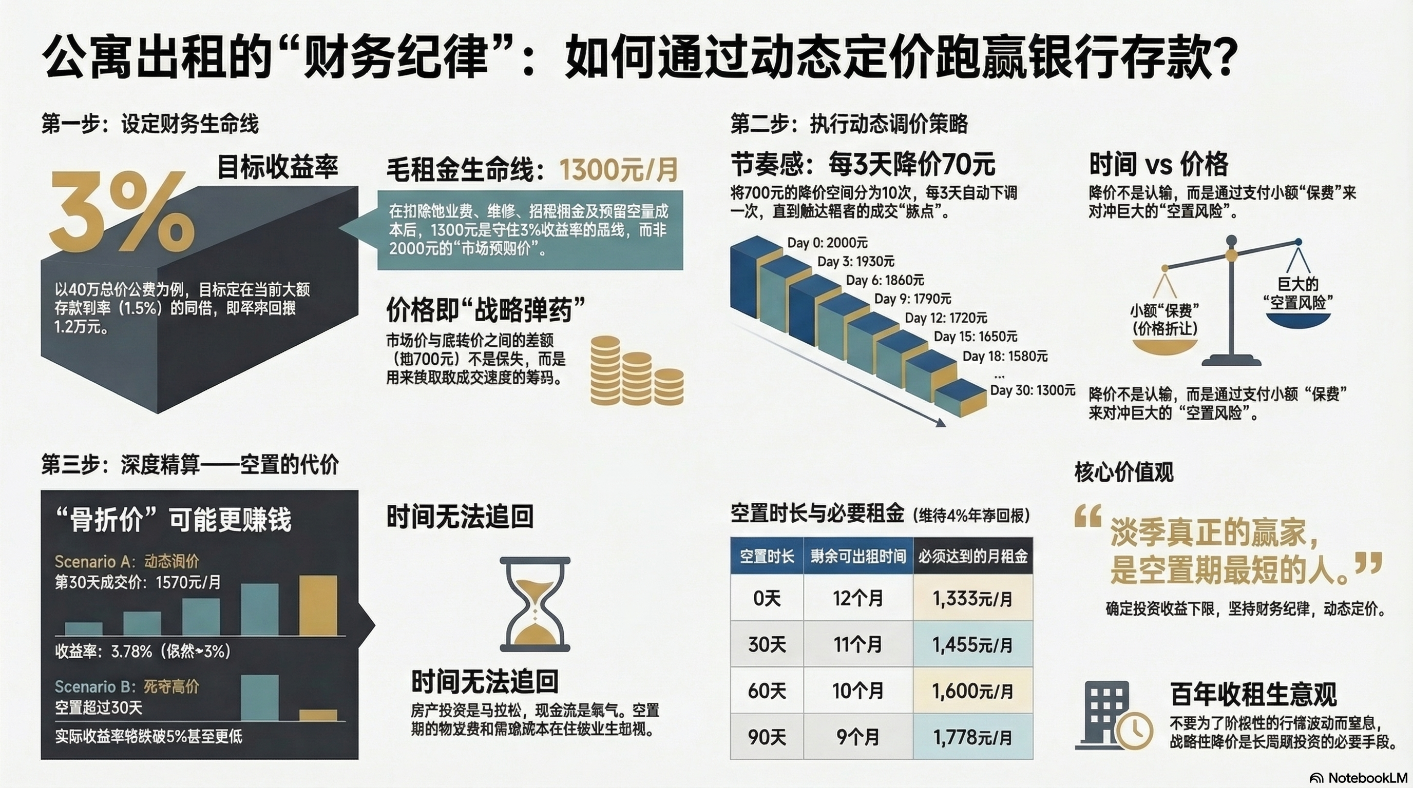 作为一个高手房东,你必须建立一个底层逻辑:公寓租金的本质是“时间价值”。